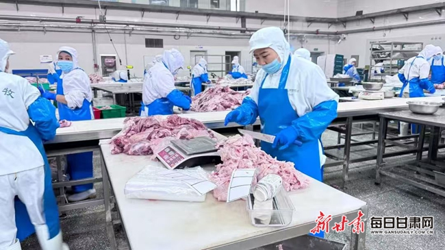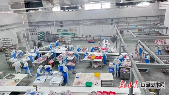 作为县上引进的产业龙头,甘肃森阳农牧科技发展有限责任公司构建了集“合作养殖+统一管控+订单回购+羊肉深加工”为一体的产业闭环,与石门、刘川、乌兰等7个乡镇紧密合作,签订订单,带动周边农户增收。走进公司屠宰车间,流程严格规范,工人熟练操作;生产车间里,工作人员将肉羊精细分割,加工成80余种高附加值产品,涵盖排类、腿类、肉卷类等,满足多元市场需求。这一模式持续提升了靖远农牧业生产及深加工的标准化、规模化、专业化水平,显著提高了靖远滩羊产业链的整体价值。
