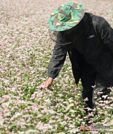 时序初秋,九月的会宁迎来了独特的荞麦“花海盛景”。县域内广袤山野间,连片的荞麦花次第绽放,红白相间的花穗随风摇曳,不仅为大地披上了一层“绚烂锦缎”,更为当地蜂农释放出了年度关键采蜜季的“信号”。蜂农们早早做好万全准备,纷纷循着花香奔赴各个蜜源地,开启了属于会宁初秋的“甜蜜丰收季”。(李佳 李佳翔)