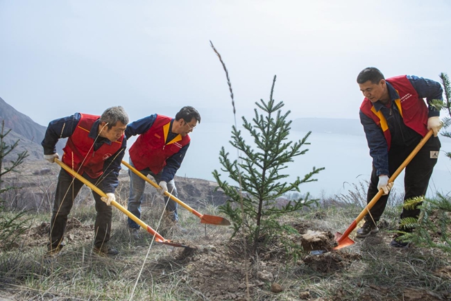 “我的工作往小了说是种树,往大了说是保护母亲河。”原绿化班老班长赵建江见证了两山变迁。在特殊地质条件下植树,需精准把控水量——水少树枯,水多滑坡。老赵走遍绿化区沟壑,熟悉每棵树的生长。