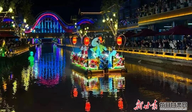 靖远水街推出的“风起大唐”文旅展演,为市民带来了一场穿越时空的文化盛宴。市民们仿佛穿越千年,邂逅了盛唐的繁华与风雅。《将进酒》等经典主题舞蹈翩翩起舞,再现了文人的豪迈与风雅;川剧变脸、花船巡游、火壶等表演精彩纷呈,让人目不暇接。每晚的灯光秀下,仿古楼阁与朱红灯笼交相辉映,营造出如梦如幻的氛围。市民们漫步其间,既能欣赏到非遗技艺的精彩展演,又能品尝到靖远特色美食,沉浸式体验“盛唐不夜城”的热闹景象。