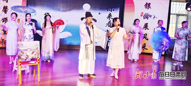 汇演现场,精彩节目接连不断,为观众呈上了一场视听盛宴。白银市老年志愿者协会美歌艺术团率先登场,带来舞蹈《丹心映国威》。舞者们身姿轻盈、舞步优美,以灵动的肢体语言展现出赤诚的爱国之心,瞬间点燃了现场气氛。紧接着,白银市文化馆黄河之声合唱团在指挥李显通的引领下,深情演绎大合唱《壮美延安》《保卫黄河》。激昂嘹亮的歌声,仿佛将观众带回到那段波澜壮阔的红色历史岁月,传递出强大的奋进力量。白银市老干部大学朗诵二班带来的朗诵《咱们的青春咱们的歌》,则以深情的语调,唤起了大家对青春岁月的美好回忆,引发了现场观众的强烈共鸣。