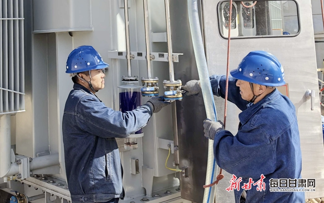 10月29日,新主变开始注油。“真空度达到标准值,可以开始注油。”工作负责人王海峰紧盯监测仪表发出指令。注油作业是决定主变绝缘性能的关键环节,现场格外安静,只听见真空滤油机低沉的运转声。