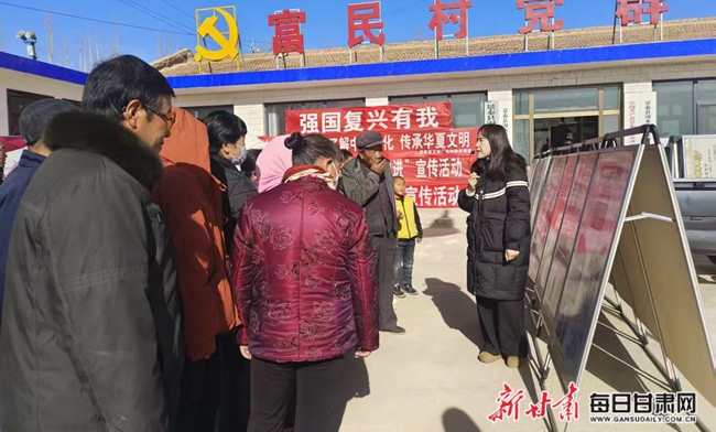 为积极践行文化惠民政策,推动优质文化资源向基层倾斜,促进城乡文化均衡发展,1月14日至15日,一场意义非凡的“新春惠民走基层 文化暖心进万家”活动在景泰县火热开展。此次活动由景泰县文体广电和旅游局主办,景泰县文化馆、景泰县图书馆、景泰县博物馆、一条山战役纪念馆、甘肃省水利博物馆共同承办,先后走进红水镇羊城村、漫水滩乡富民村、正路镇黄崖村、芦阳镇席滩村,为当地群众送上了一场精彩纷呈的文化盛宴。