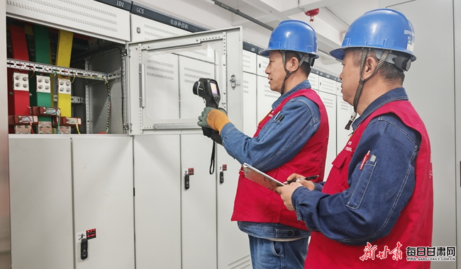 “红外测温显示电缆接头温度正常,运行状况良好。”在水街配电室,马天海紧盯仪器屏幕,向身旁记录的柴学军说道。
